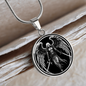 Discover the allure of our exquisitely crafted necklace featuring a captivating illustration of Azrael, the enigmatic angel of death, symbolizing transition and transcendence - a unique statement piece merging mythology, spirituality, and fine jewelry, perfect for those seeking an intriguing blend of darkness and divinity.