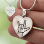 Show your love and appreciation for the hearing impaired community with this elegant necklace featuring an illustration of the ASL I love you sign, a symbol of unity and inclusivity that transcends language barriers.