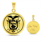 Unleash your inner Ecuadorian pride with our exquisite necklace showcasing a stunning portrayal of the legendary Coat of Arms of Ecuador, crafted with meticulous attention to detail and fine artistry.